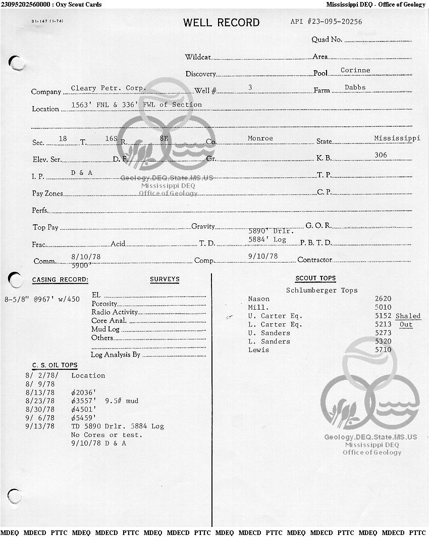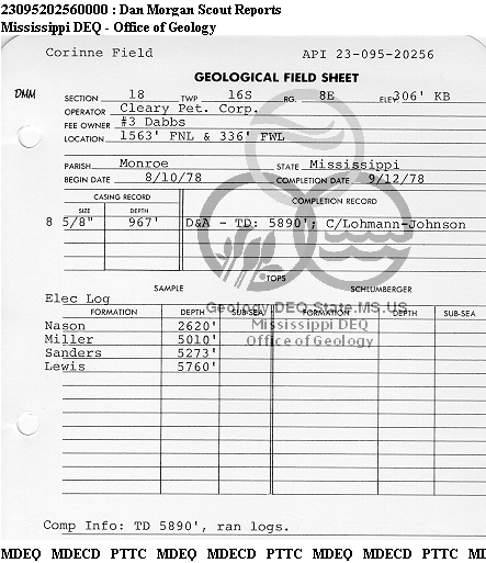 | 1 | 23095202560000 | CLEARY PETROLEUM CORPORATION | Dabbs | 3 | Dry Hole |