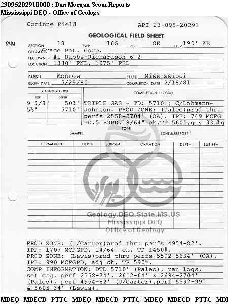 | 1 | 23095202910000 | SAMSON RESOURCES CO | Dabbs-Richardson 6-2 | 1 | Production |