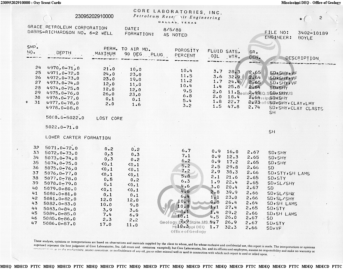 Sorry, no core or sample data available for this well.