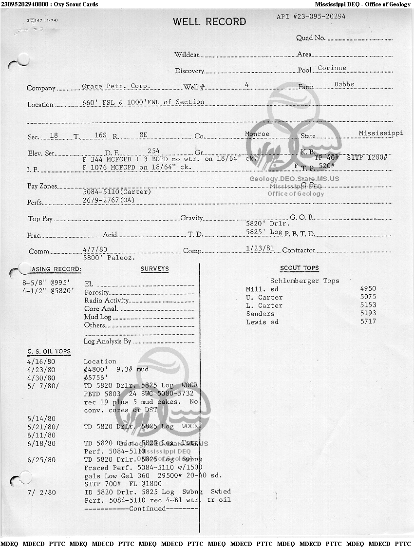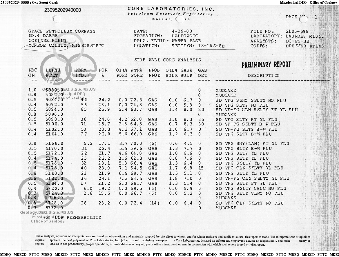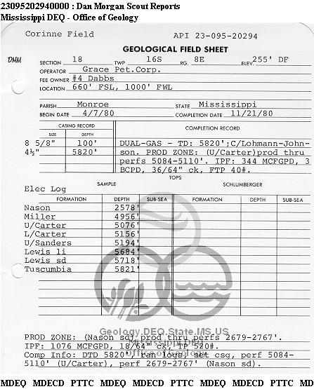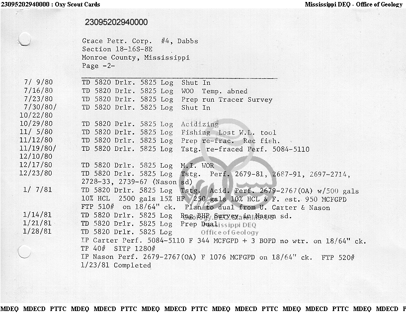 | 1 | 23095202940000 | GRACE PETROLEUM CORP. | Dabbs | 4 | Production |