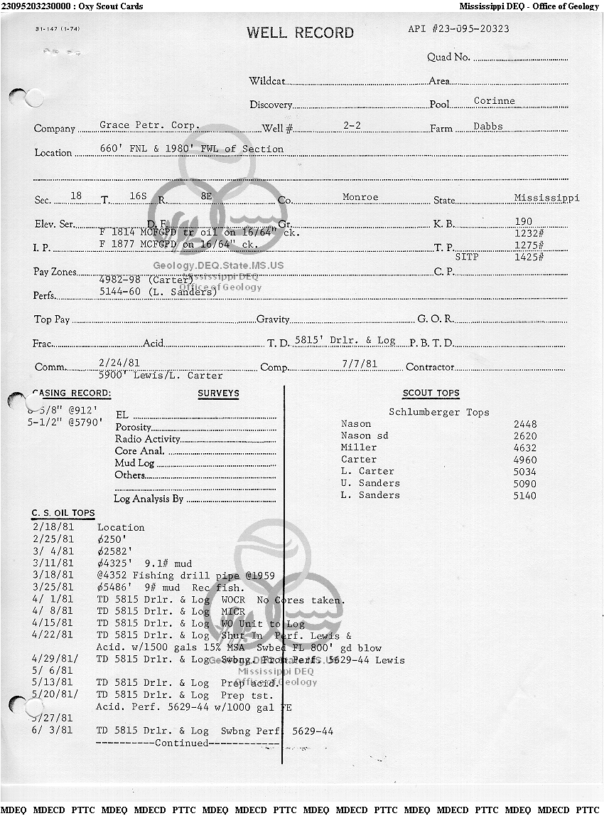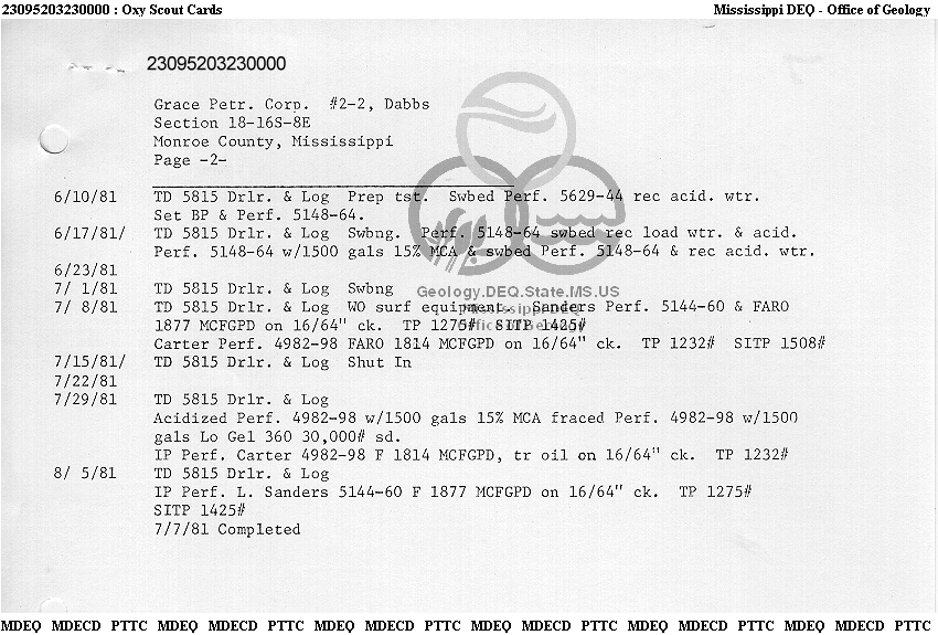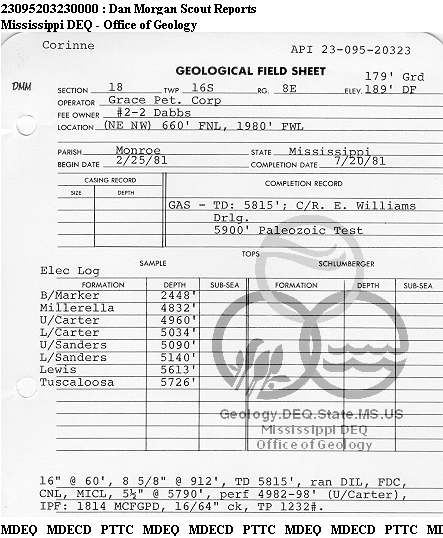 | 1 | 23095203230000 | SAMSON RESOURCES CO | Dabbs | 2-2C | Production |