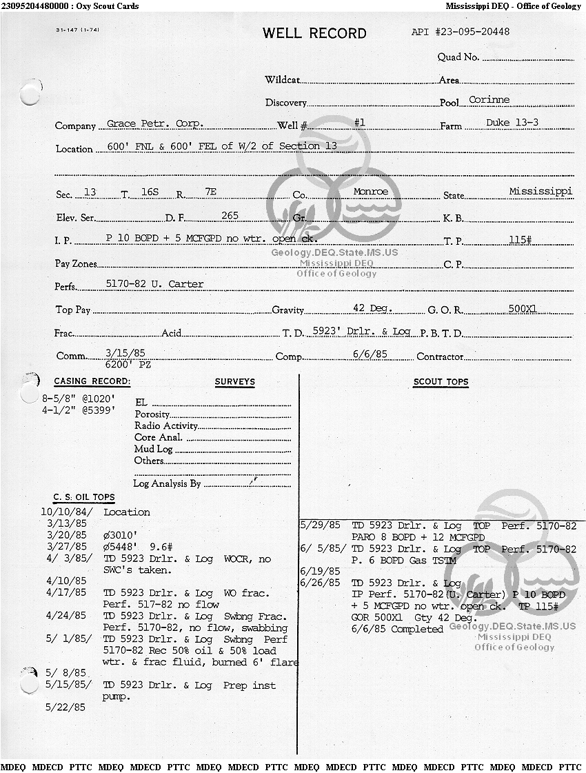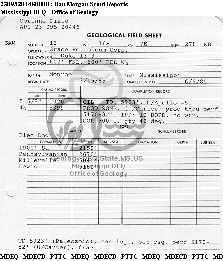 | 1 | 23095204480000 | THOMPSON SERVICES INC | Duke 13-3 | 1 | Oil Production |