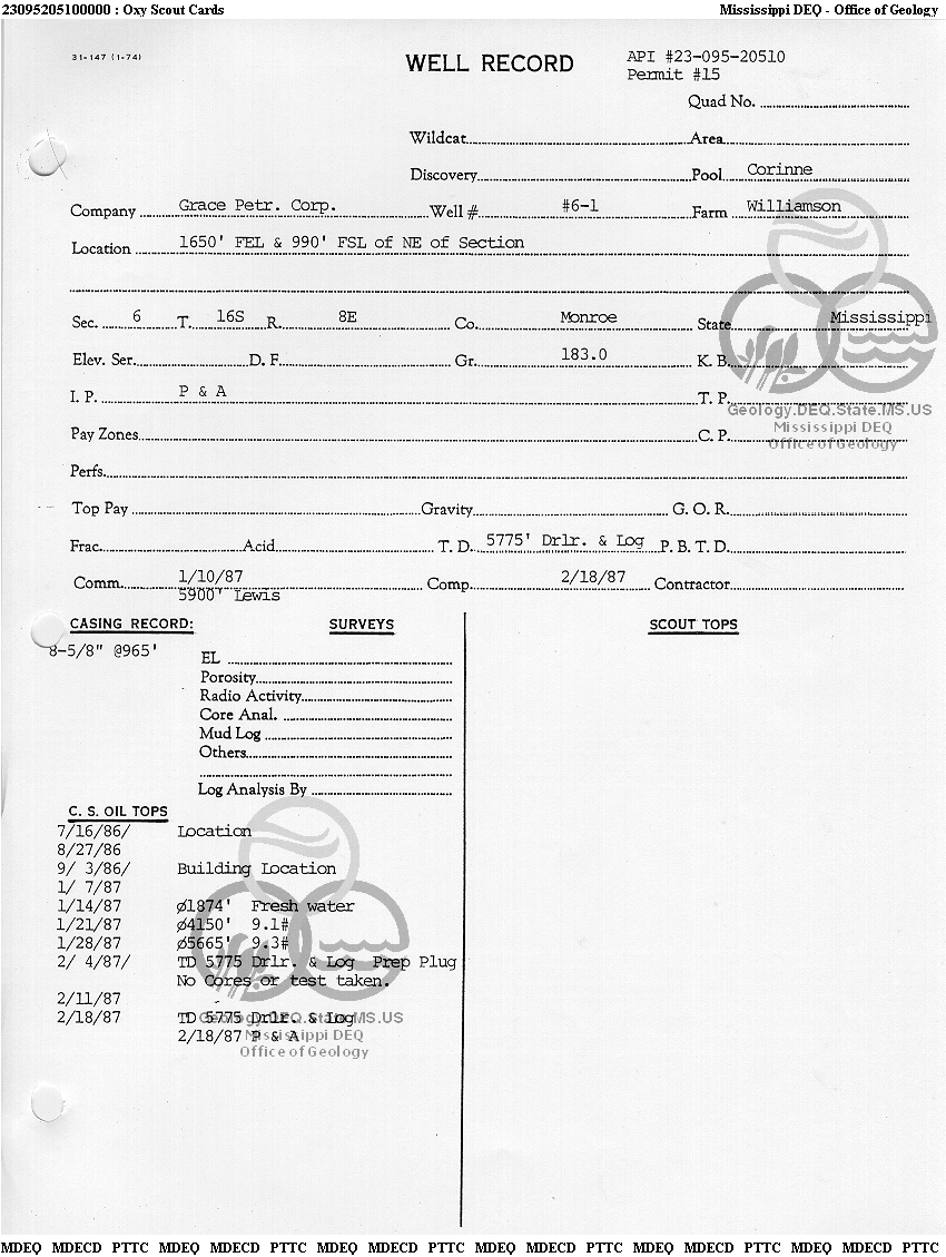 | 1 | 23095205100000 | GRACE PETROLEUM CORP. | Williamson | 6-1 | Dry Hole |