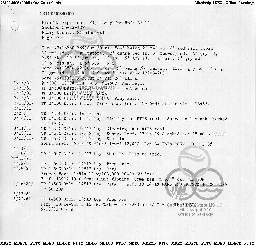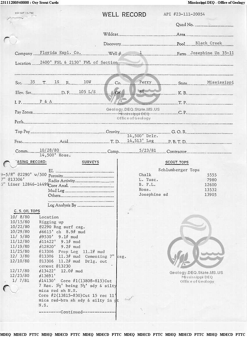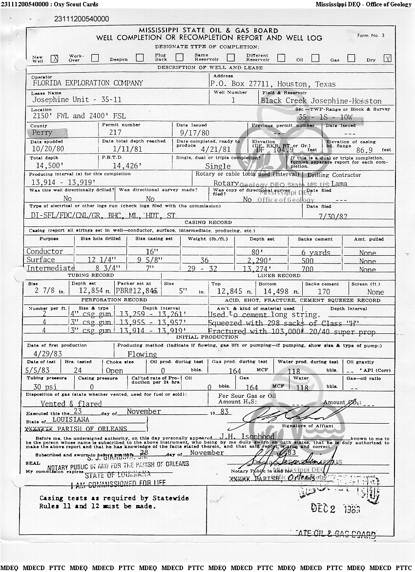 | 1 | 23111200540000 | FLORIDA EXPLORATION CO. | JOSEPHINE UN 35-11 | 1 | Dry Hole |