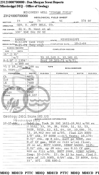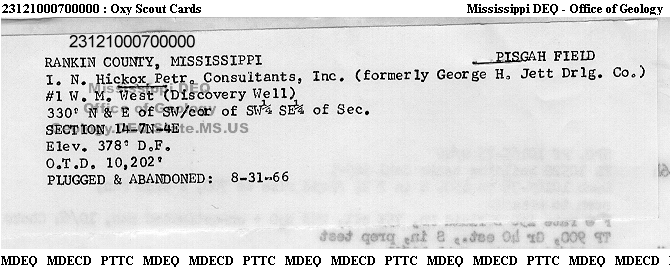 | 1 | 23121000700000 | I N HICKOX | W M WEST ETAL | 1 | Oil Production |