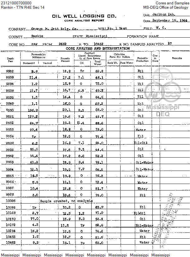 | 23121000700000 | Core and Sample Data | Core Analysis | view | 1 |