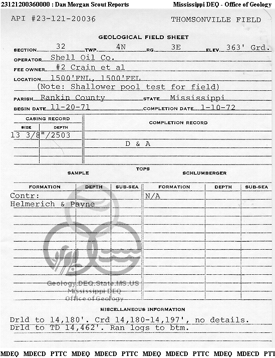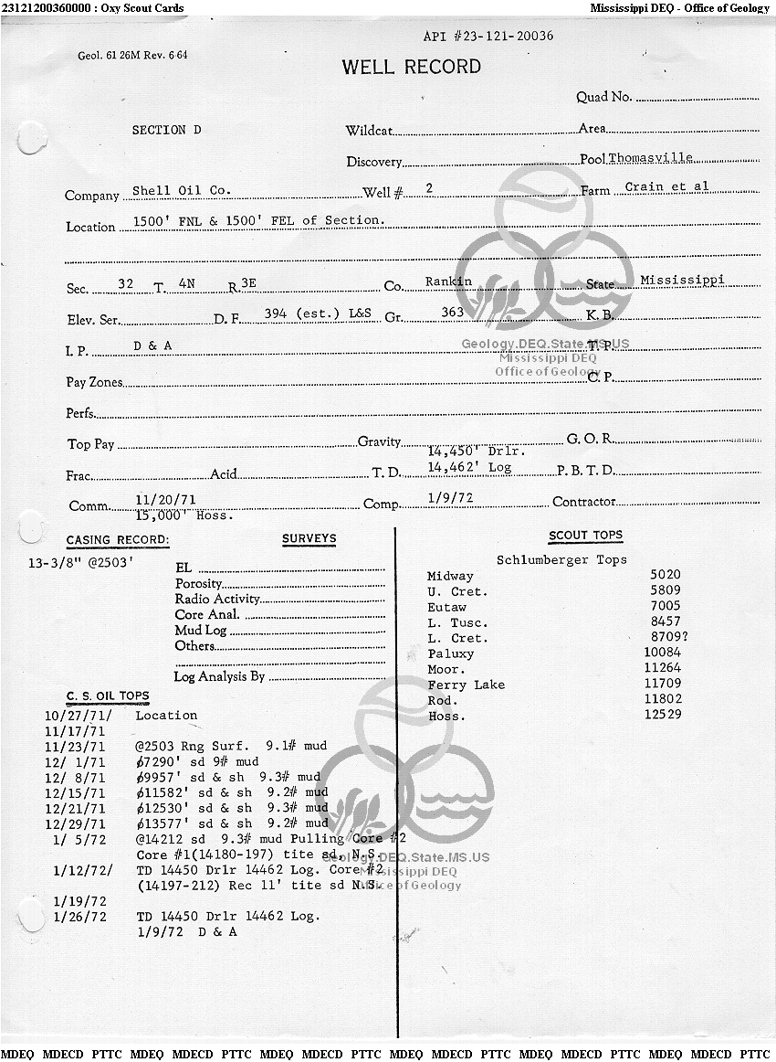 | 1 | 23121200360000 | SHELL OIL CO. -NOLA | Crain et al | 2 | Dry Hole |