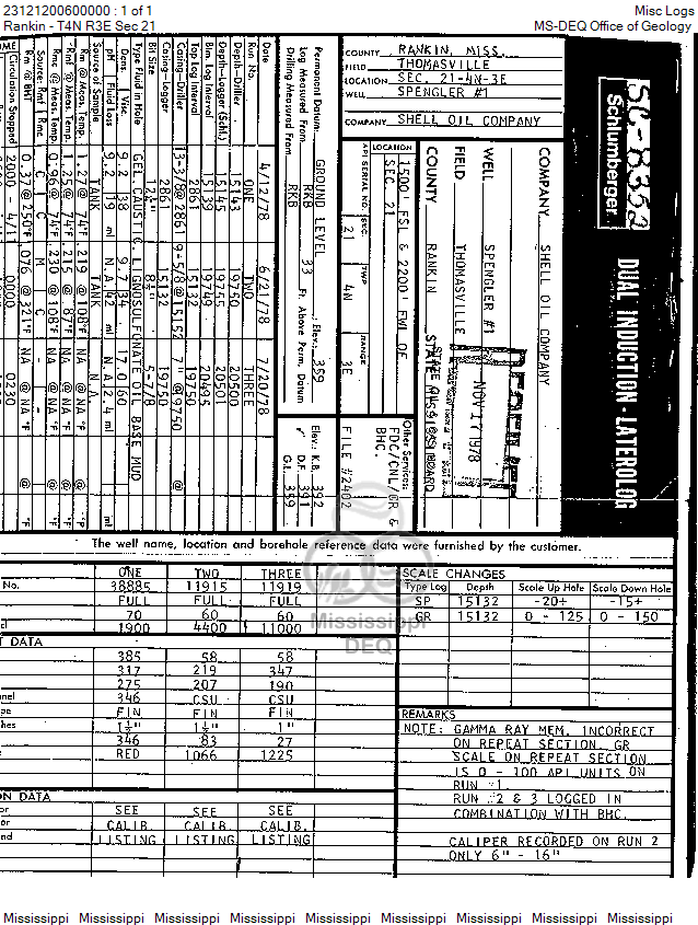 | 23121200600000 | Misc Logs | Induction Electric Log | view | 1 |