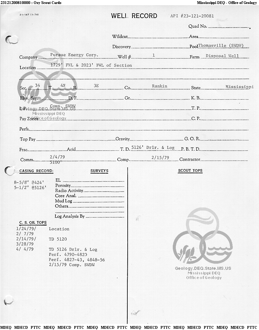 | 1 | 23121200810000 | PURSUE ENERGY CORP | Thomasville swdw | 1 | Disposal |