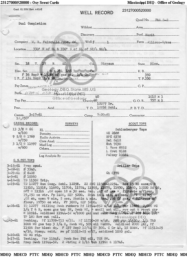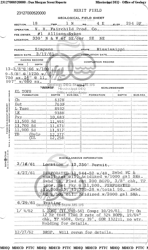 | 1 | 23127000520000 | W. R. FAIRCHILD PROD. CO. | Allison-Sykes | 1 | Oil Production |