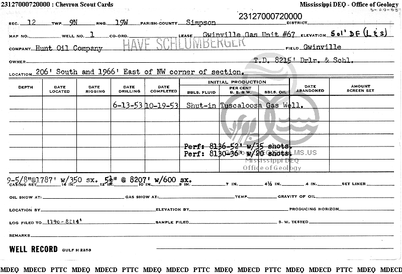 | 1 | 23127000720000 | HUMBLE OIL & REFINING CO. | GWINVILLE UNIT 67 | 1 | Production |