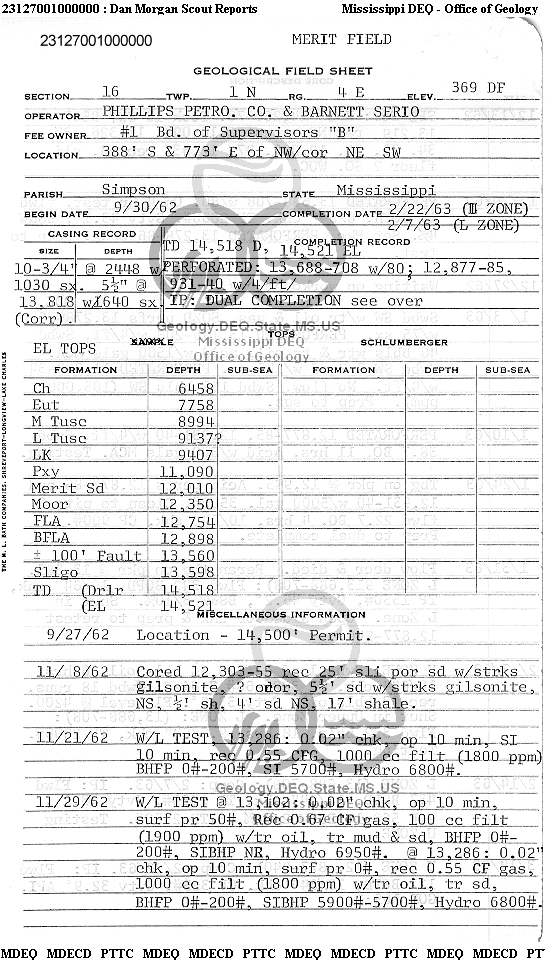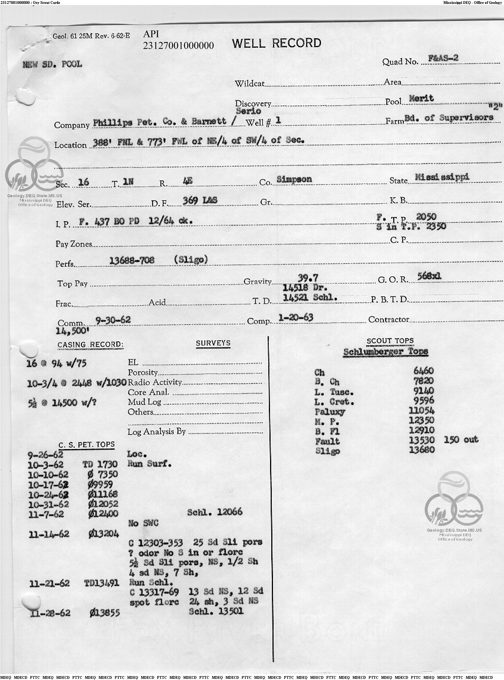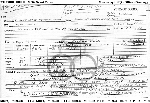 | 1 | 23127001000000 | PHILLIPS PETROLEUM CO | BOS | 1 | Oil Production |