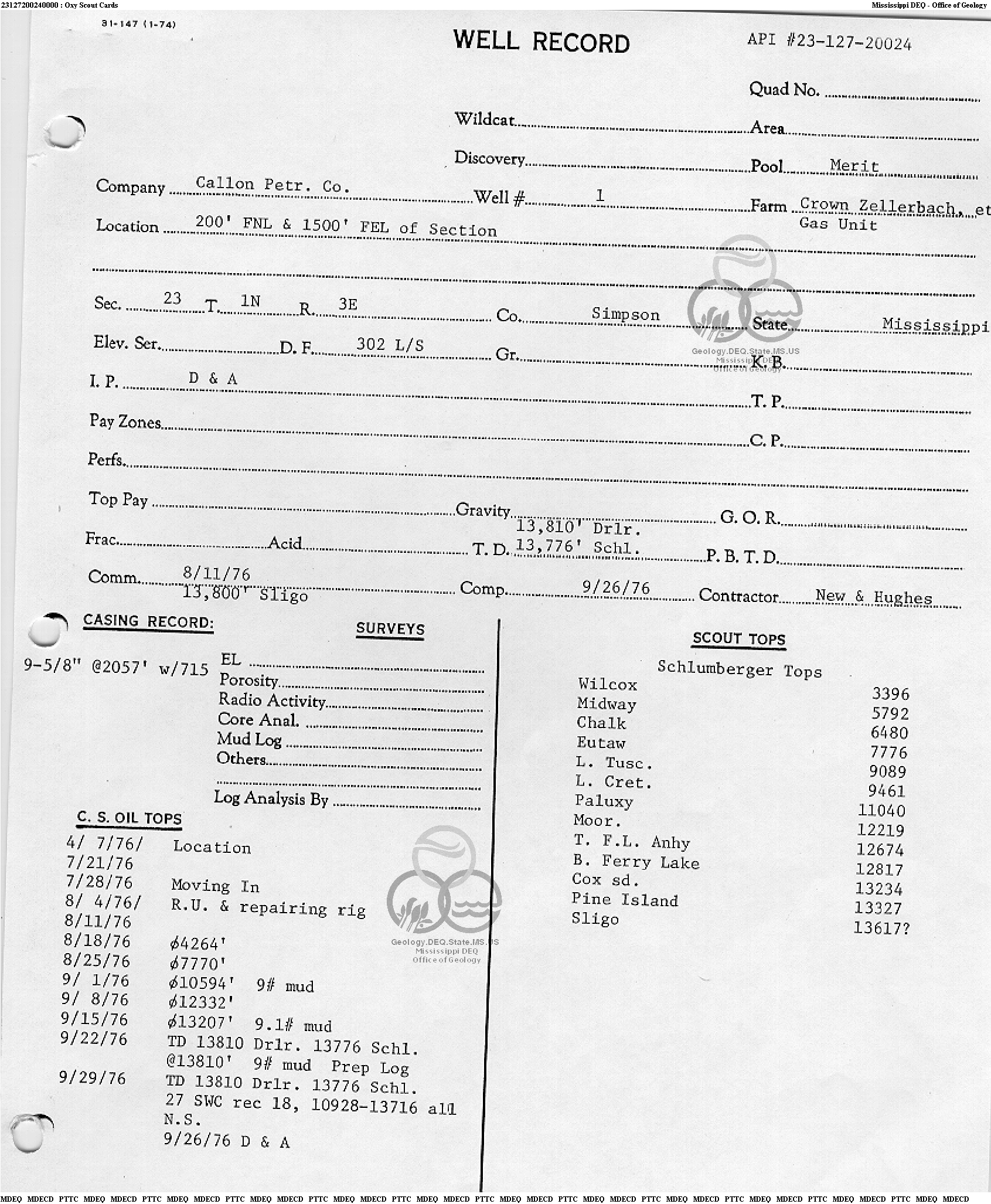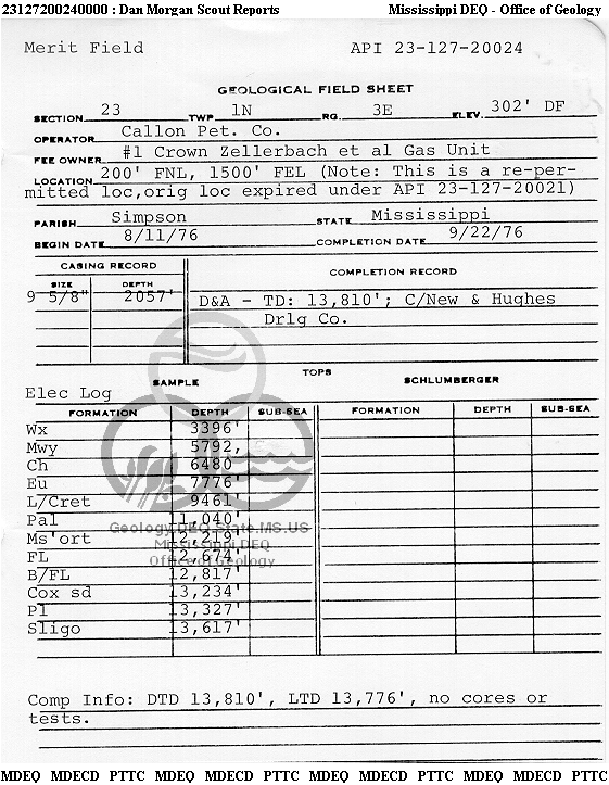 | 1 | 23127200240000 | CALLON PETROLEUM CO. | Crown Zellerbach | 1 | Dry Hole |
