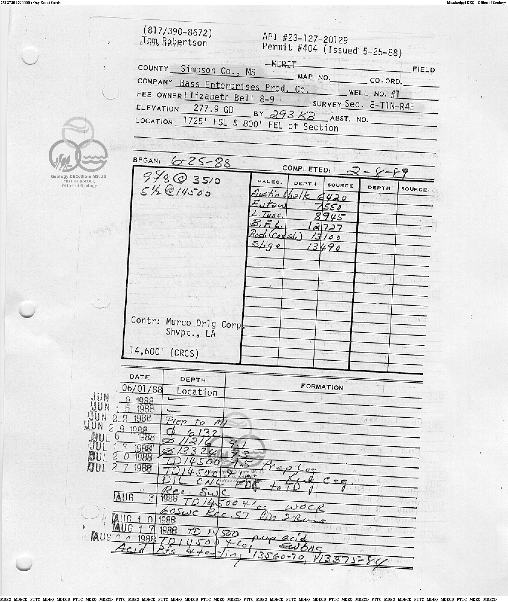 | 1 | 23127201290000 | BASS ENTERPRISES PRODUCTION CO | Elizabeth Bell 8-9 | 1 | Production |