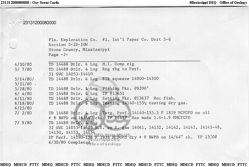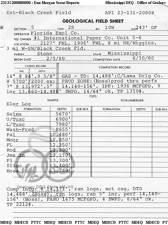 | 1 | 23131200080001 | MOON HINES TIGRETT OP CO | BLACK STONE MINERALS 5-6 | 1 | Dry Hole |