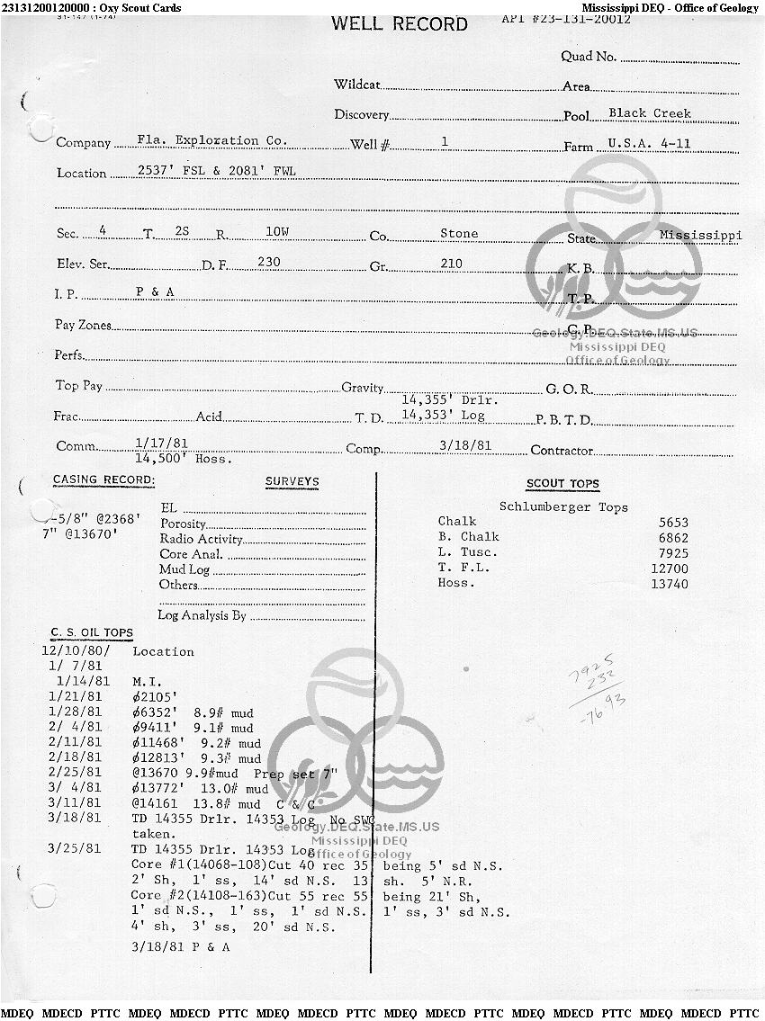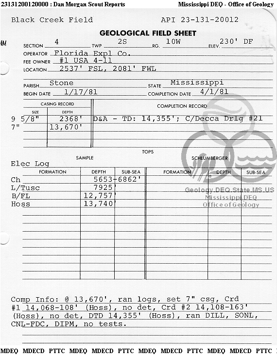 | 1 | 23131200120000 | FLORIDA EXPLORATION CO. | USA 4-11 | 1 | Dry Hole |