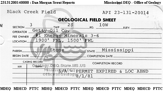 | 1 | 23131200140000 | GETTY OIL CO. | ENERGY MINERALS 3-6 1 | 1 | Expired Location |