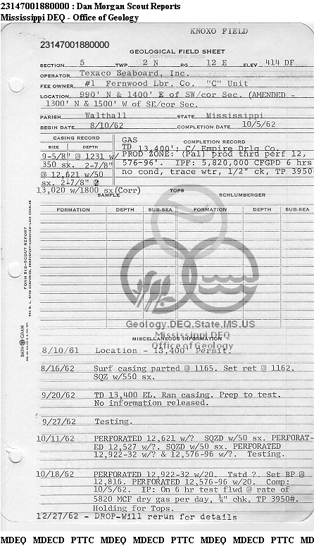 | 1 | 23147001880000 | TEXACO SEABOARD, INC. | FERNWOOD LBR CO | C-1 | Production |