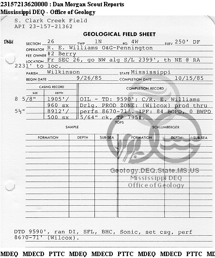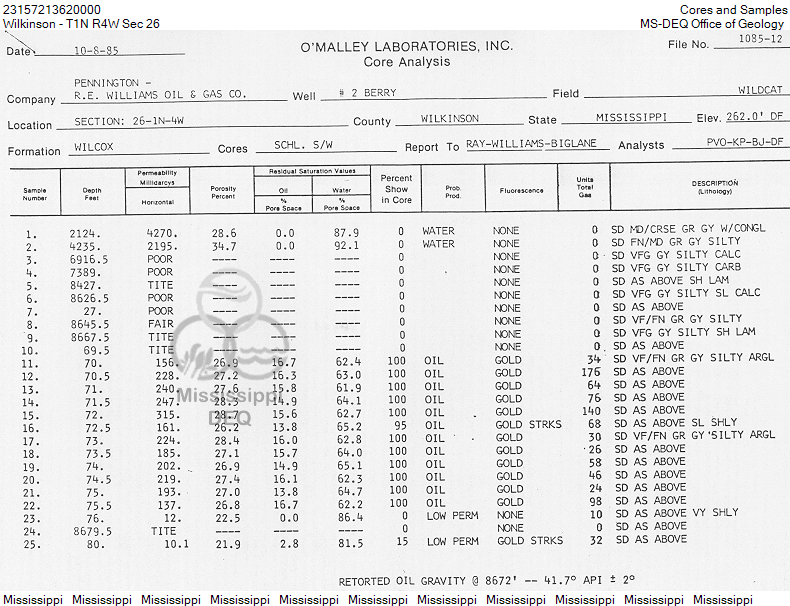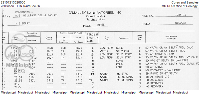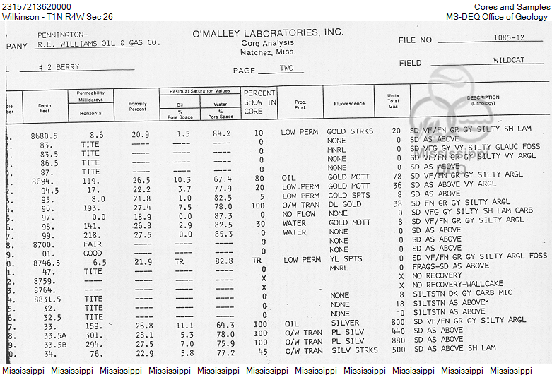 Sorry, no core or sample data available for this well.