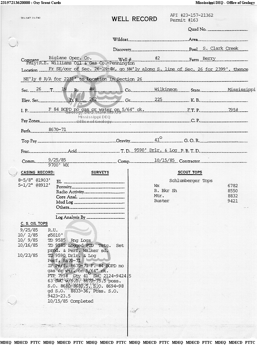 Available data may not be sufficient to properly display this well location. Check for scout ticket information or OGB's files for location plat.