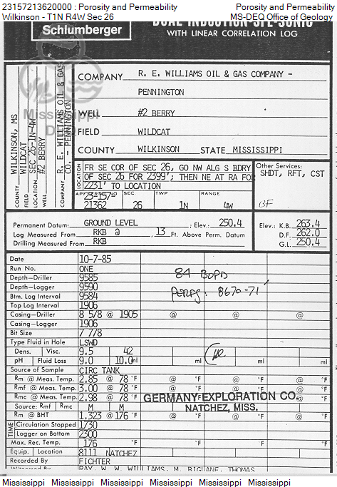| 23157213620000 | Porosity and Perm Log | Porosity Log - Sonic or Induction | view | 1 |