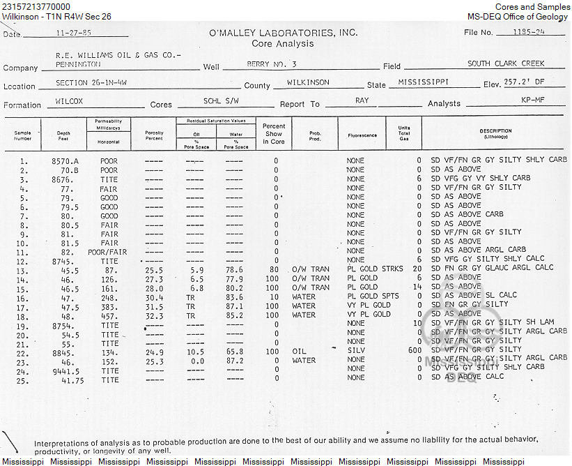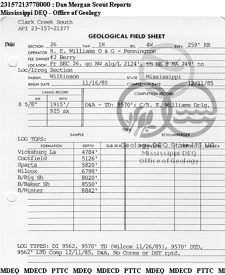 | 1 | 23157213770000 | WILLIAMS, R. E. | BERRY | 3 | Dry Hole |