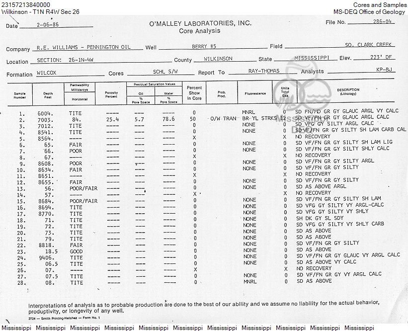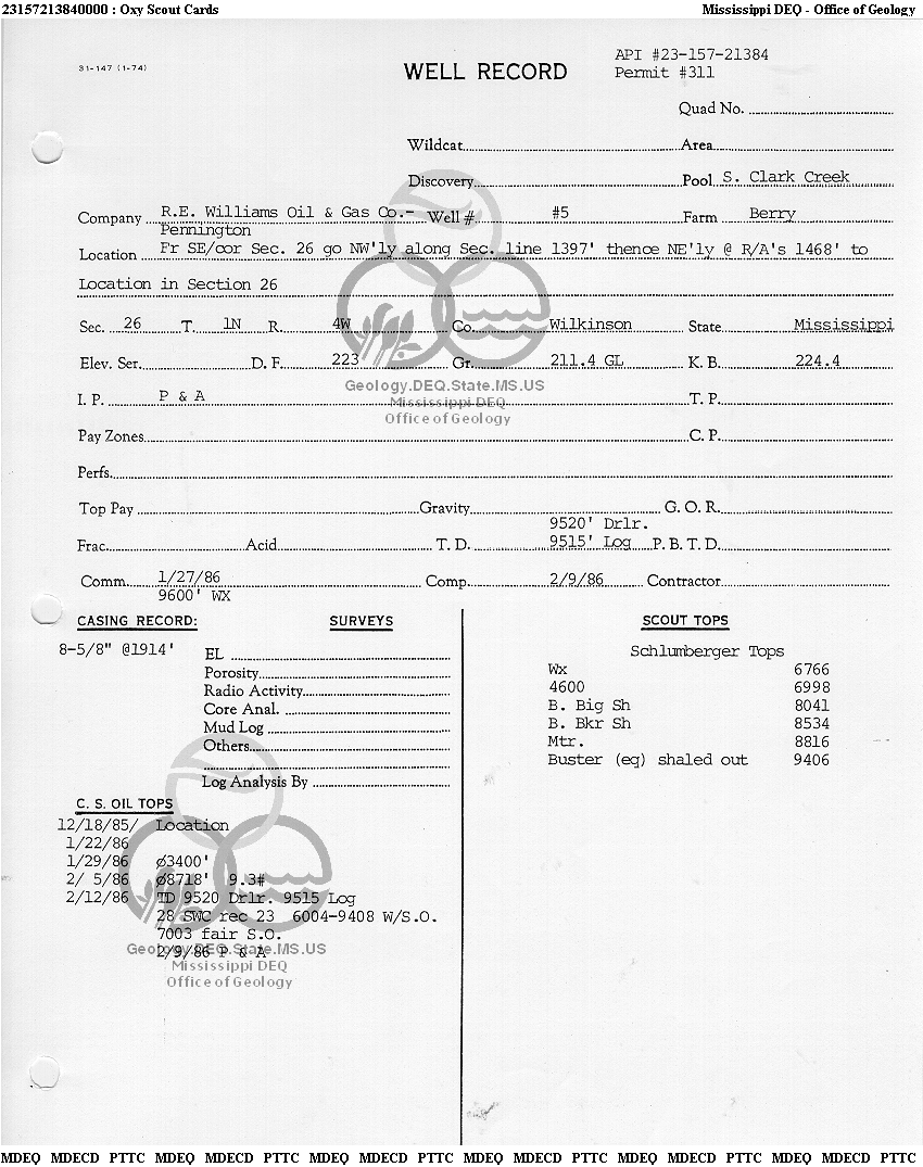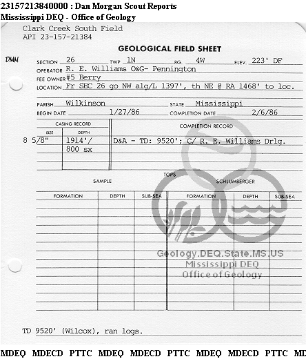 | 1 | 23157213840000 | WILLIAMS, R. E. | BERRY | 5 | Dry Hole |