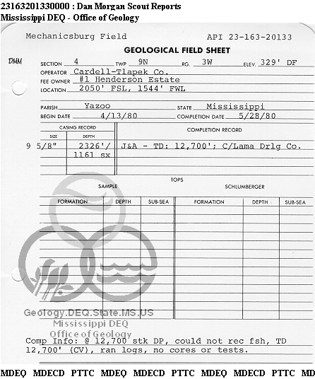 | 1 | 23163201330000 | CARDELL-TLAPEK CO. | Henderson estate | 1 | Dry Hole |