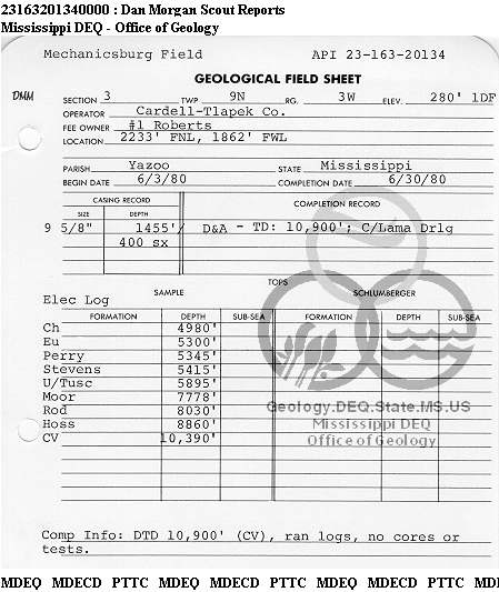 | 1 | 23163201340000 | CARDELL-TLAPEK CO. | Roberts | 1 | Dry Hole |