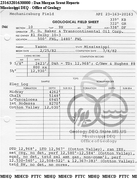 | 1 | 23163201630000 | TRANSCONTINENTAL OIL CORP. | Selby 10-3 | 1 | Dry Hole |