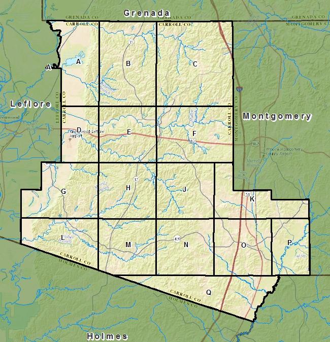 County Seat: Carrollton and Vaiden Formed: 1833 Area: 634 square miles Population: 10,769 Origin of County name: Named for Charles Carroll, a signer of the Declaration of Independence. Legend |
